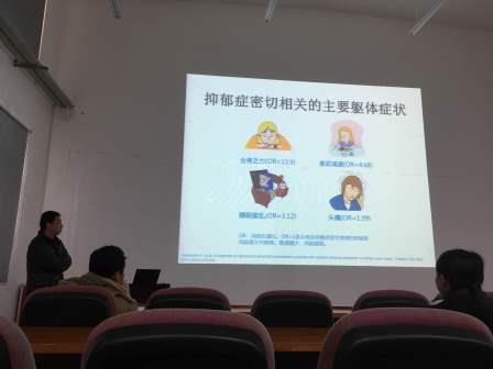 符浩博士在报告现场分发焦虑和抑郁量化自评表,通过微型、中度和高度抑郁的自评方式来了解自身的心理状况和抗压能力,直面躯体症状的心理表现。报告得到了与会研究生们和青年科研人员热烈的反应,大家就抑郁症和焦虑症的心理状态进行了长时间的咨询和讨论,促进了对自身心理状态和抗压能力的认识和理解。
