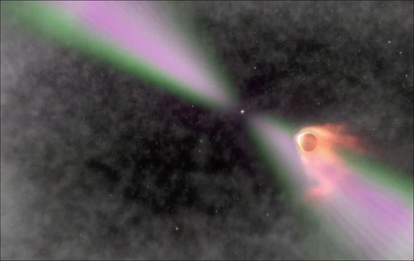 图1.毫秒脉冲星的脉冲辐射蒸发伴星示意图(图片来源:https://svs.gsfc.nasa.gov/11215)