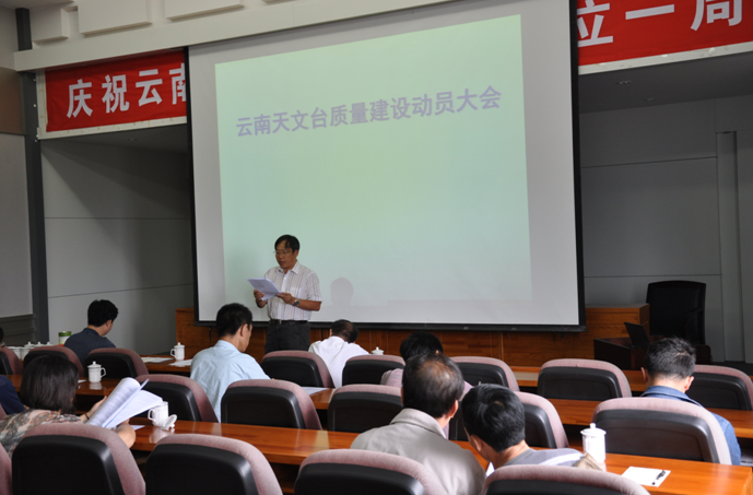 7月5日上午,云南天文台召开了全台质量管理体系建设动员大会。会议由赵世荣书记主持,韩占文台长出席会议并做动员报告。中国质量协会科学技术分会秘书长王富良研究员应邀到会介绍了有关质量管理体系建设工作的内容。
